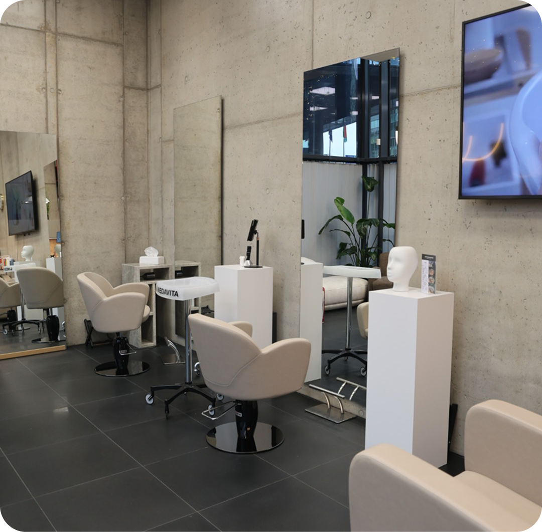 Personalized hair and scalp programs designed as long-term solutions, combining in-salon care, home protocols, and professional products.